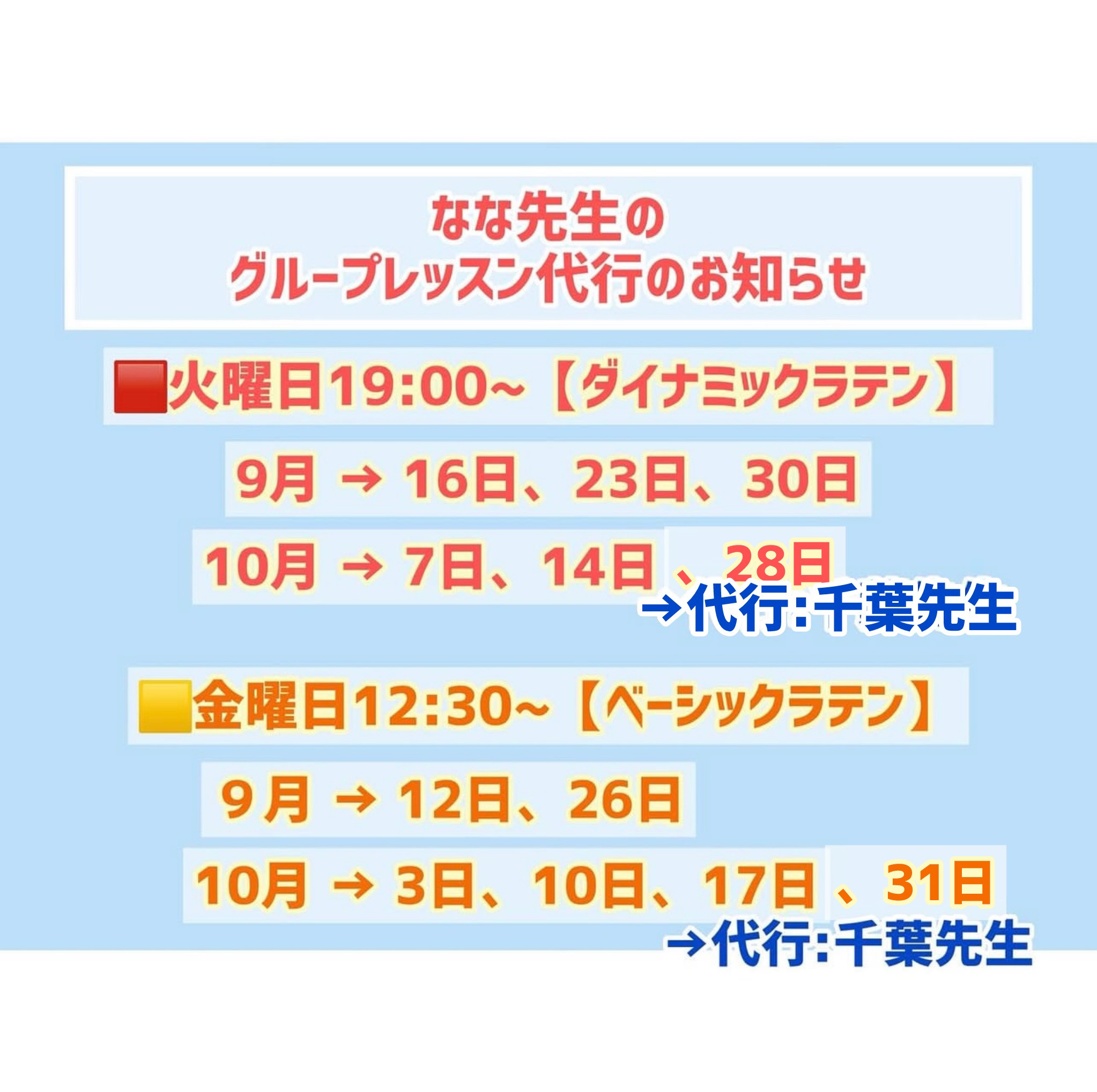 9月のグループレッスン情報&代行のお知らせ