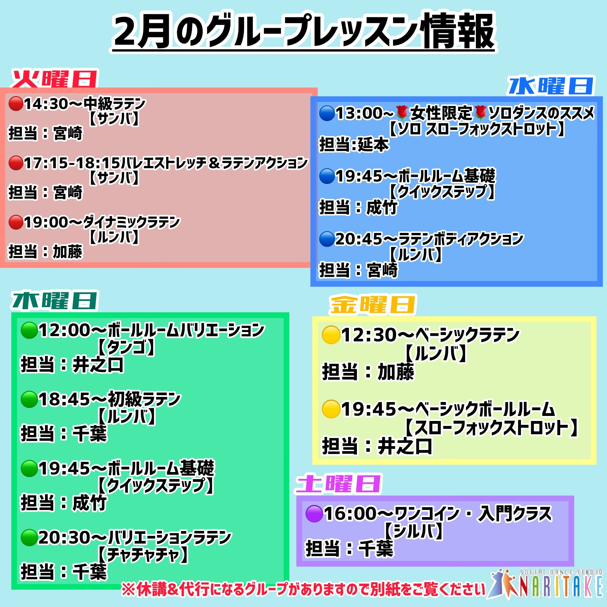 2月のグループレッスン情報