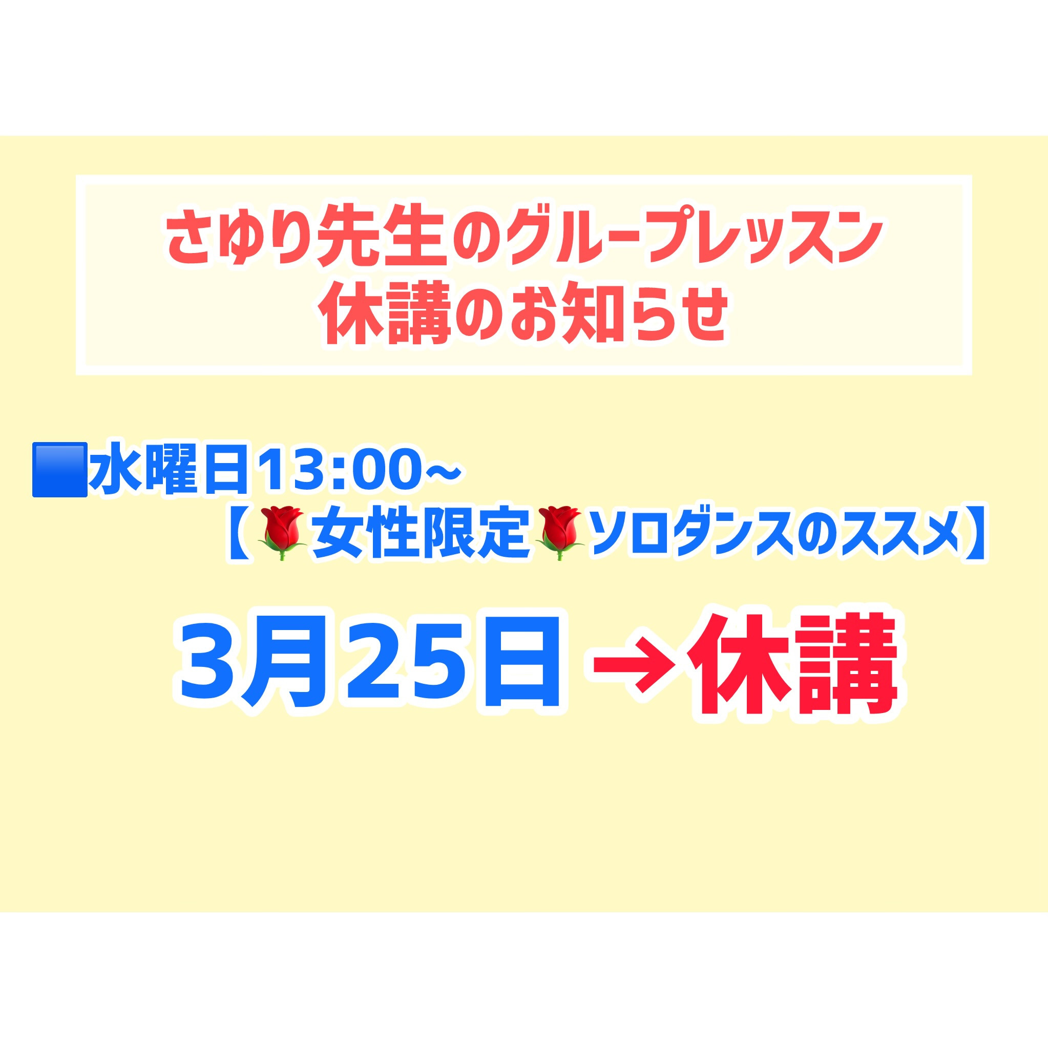 3月25日(水)さゆり先生のグループレッスン休講のお知らせ